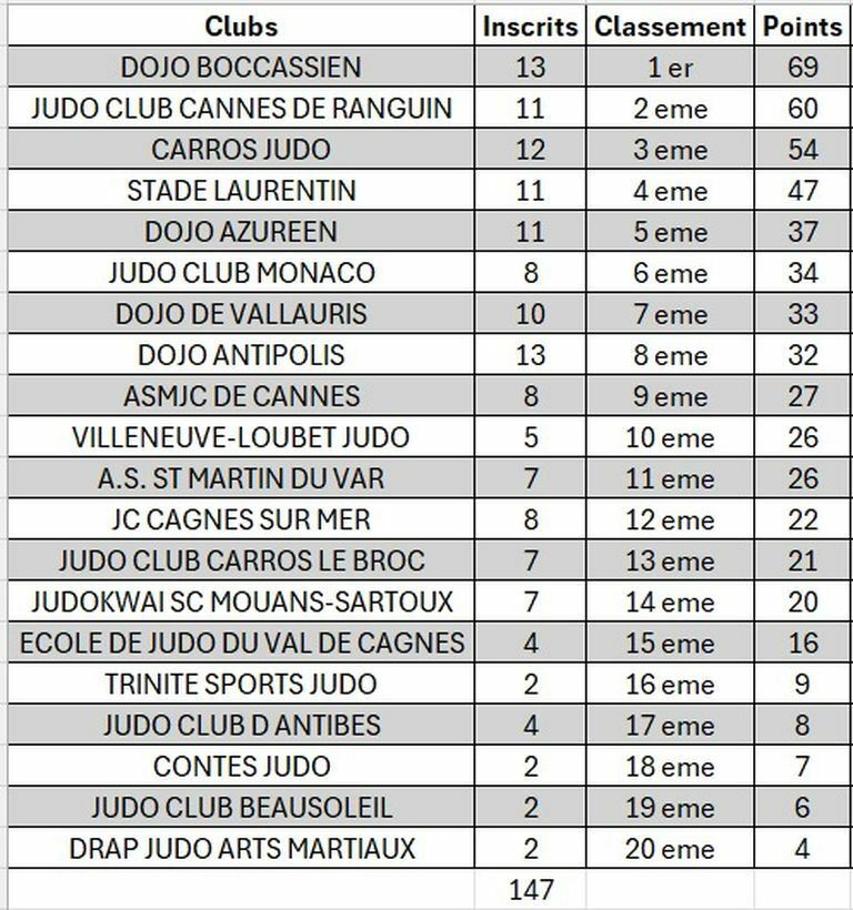 147 Judokas de la catégorie poussins/ poussines, représentant 20 Clubs se sont affrontés sur les Tatamis.