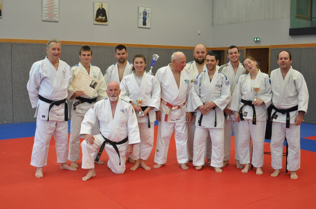 Comme chaque année à la même date, les ceintures noires du département se sont retrouvées dans le dojo de Valbonne en souvenir de Bernard Midan, pour partager ensemble une matinée conviviale et studieuse. Carros Judo était bien représenté cette année avec dix participants, qui, de plus, ont joué le jeux en participant d'une part, à la coupe yaku soku geiko Serge OUDARD avec Caroline VIGNON et Elodie TAUPIN, et Guillaume BEAUCLAIR et Florian SANCHEZ qui ont eux participé à la coupe Kata Marc MARTIN. Toutes nos félicitations aux participants qui ont remporté la place de 3ème pour Caroline et Elodie et la place de 2ème pour Guillaume et Florian. Lors de cette manifestation le diplôme de 2ème DAN a été remis à Clément LE ROY. La matinée s'est terminée comme d'habitude par un mondo dont le sujet était cette année le nouveau programme pour les passages de grade à partir du 1er Janvier 2019. Durant la matinée, une minute de silence a été respectée à l'occasion du centenaire de l'armistice du 11Novembre 1918.