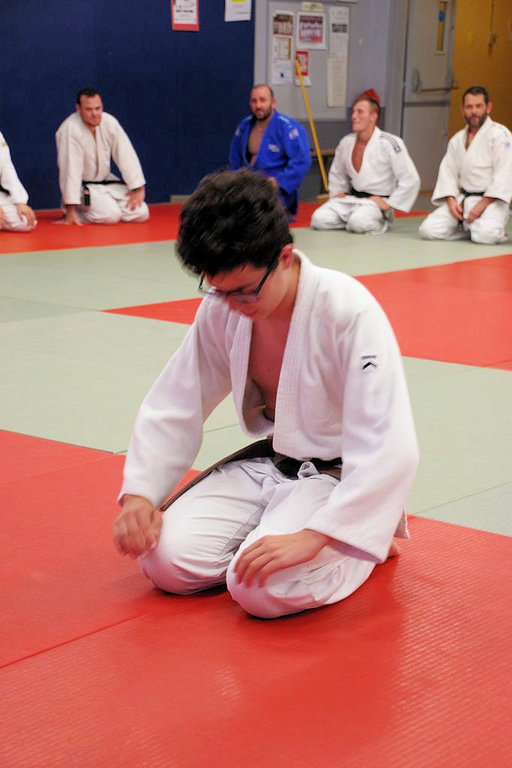 La saison 2018/2019 vient de se terminer et le club compte une nouvelle ceinture marron. En effet Ezio PARENTI, élève sérieux et appliqué vient d'obtenir la ceinture marron après avoir présenté, comme il est de coutume à Carros Judo, les deux premières séries du Nage No Kata, qui en comporte cinq. Avec son partenaire Mickaël, ils ont fait une belle prestation, avec quelques imperfections, mais cela est tout à fait normal pour une ceinture marron. Il faudra poursuivre le travail technique avant de pouvoir présenter le premier dan, car à partir du premier dan, la décision ne dépends plus du club mais de juges extérieurs au club. En tout cas, Félicitations à Ezio pour l'obtention de sa ceinture et courage pour la suite.