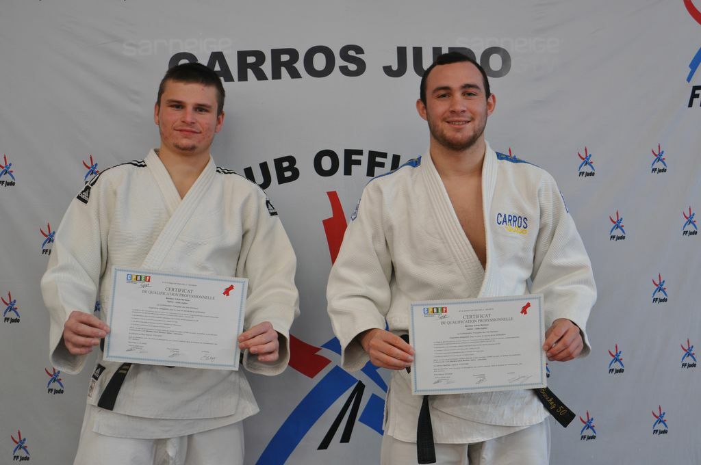 Malgré une saison 2019/2020 bien perturbée par la COVID 19, deux de nos jeunes judokas, Clément LE ROY 20 ans CN 2 ème DAN et Lorenzo SANCHEZ 23 ans CN 2ème DAN, se sont investis durant toute la saison afin de suivre une formation pour obtenir le diplôme de moniteur d’Arts Martiaux (CQP) qu’ils ont obtenu avec succès, ce qui leur permet à présent de donner des cours de judo sous le contrôle de leur directeur technique Jérôme TORZUOLI CN 3ème DAN. Le club est très heureux de compter parmi ses licenciés, deux nouveaux professeurs qui pourront, dans l’avenir, prendre le relais quand le moment sera venu. Félicitations à ces deux garçons et bonne continuation pour leur carrière de Judoka.